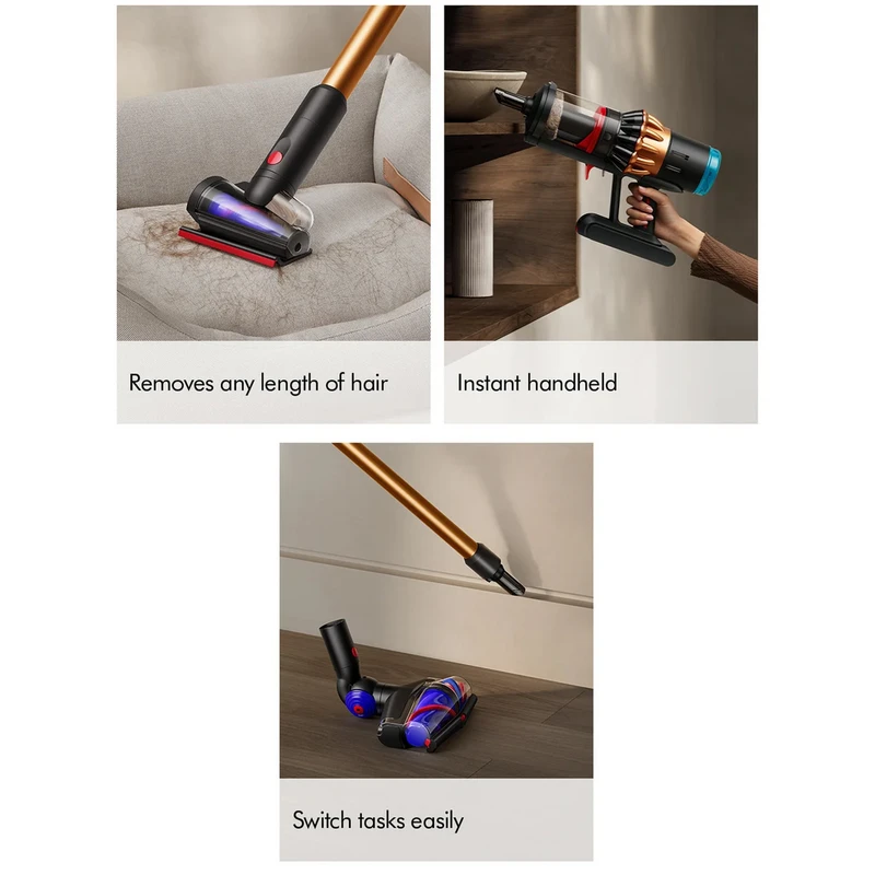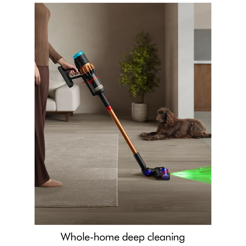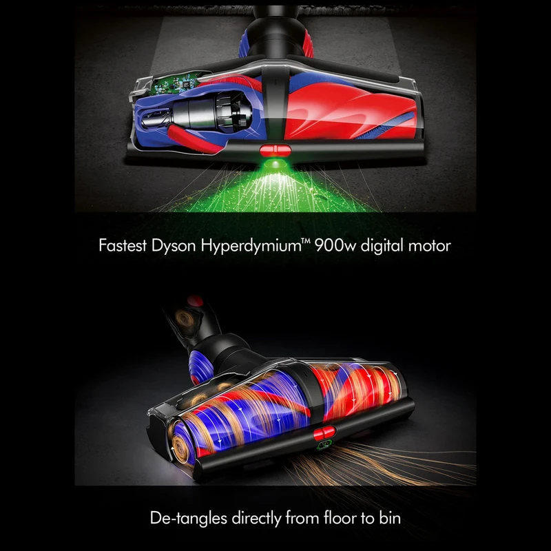 قلب تپنده این دستگاه، موتور دیجیتال Dyson Hyperdymium™ با توان واقعی ۹۰۰ وات است که مکشی قدرتمند و پایدار معادل ۳۱۵ Air Watts تولید میکند؛ مکشی که حتی در استفاده طولانیمدت نیز دچار افت نمیشود. این قدرت بالا امکان جمعآوری مؤثر گردوغبار، ذرات ریز و موهای حیوانات خانگی را از انواع سطوح فراهم میسازد.