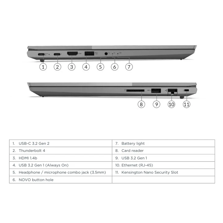 - انواع درگاهها: USB Type-C، USB، HDMI، شیار کارت حافظه، LAN (RJ-45)، DisplayPort، Thunderbolt 4