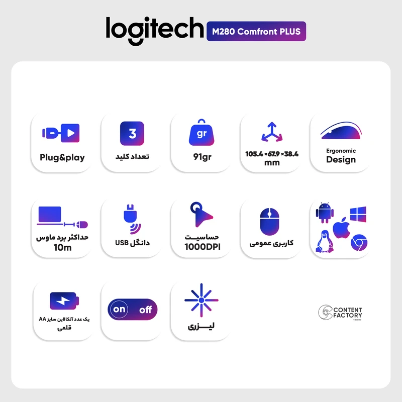 همهی این ویژگیها در کنار هم، ماوس بیسیم Logitech M280 Comfort PLUS را به انتخابی هوشمندانه برای امور روزمره، اداری و حتی طراحی و گرافیک تبدیل کرده است؛ کیفیتی فراتر از قیمت!